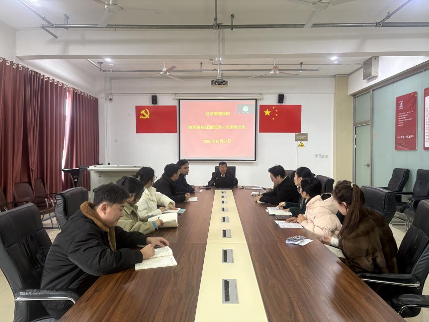 2025年10月28日下午,英国365集团于知行楼712室召开2025年下半年山东省高等学校教师资格考试面试工作部署会。会议围绕省教育厅及学校面试工作要求、学院应考教师名单确认、培训与模拟面试安排、报名及资料上传注意事项展开,明确任务分工,压实备考责任。院长于维同主持会议并讲话,学院综合科科长栗心生参会。