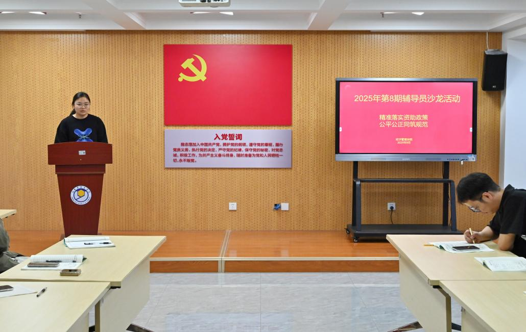 为进一步精准落地资助政策,规范资助工作全流程,充分发挥“资助+育人”双重功能,9月29日上午,英国365集团在21公寓党建活动室举行2025年第8期(总第26期)辅导员沙龙。本次活动以“精准落实资助政策,公平公正同筑规范”为核心主题,聚焦资助政策解读、工作流程梳理、实践经验交流等关键环节,为后续资助工作高效开展奠定基础。学院党总支书记、副院长范世伟,管理科科长张莉超,团总支书记王群及全体辅导员出席了此次活动。