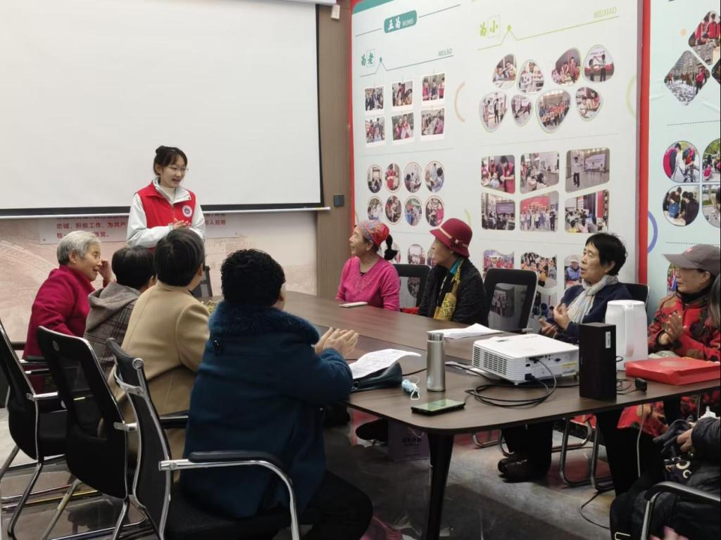 活动现场,非遗文化的浸润与互动热情交织成景。同学们以“理论+实景”相结合的方式开展宣讲,通过图文展板、非遗史料手册系统梳理地方戏曲、传统技艺的起源流变,深入浅出解读非遗背后的文化密码与时代价值,让居民直观感受传统文化的传承脉络。随后,志愿者们演绎《武家坡》《穆桂英挂帅》等经典选段,婉转唱腔与优美身段赢得阵阵掌声,部分老年居民主动加入合唱,以耳熟能详的戏曲旋律串联起跨代际的文化共鸣,让非遗在互动传唱中焕发鲜活生机。