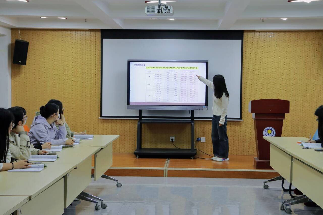 本次沙龙由王艳艳老师主讲,她围绕“以赛促学,以赛育人”核心主题,从政策解读、竞赛概况、实战经验、项目培育四个维度,为全体辅导员作了系统且翔实的分享。王老师指出,当前国家与学校对学科竞赛的扶持力度持续加大,辅导员作为学生成长的引路人,需精准把握政策导向,主动引导学生参与高水平学科竞赛,以竞赛为载体锤炼学生综合素养。分享中,她结合自身指导经验,通过具体案例,详细拆解了非遗类竞赛项目的培育流程、创新点挖掘技巧及成果储备策略,创新性提出“从奖状一张到价值闭环”的项目培育理念,强调学科竞赛成果应真正落地,服务于社会需求、产业发展与人才培养全过程。