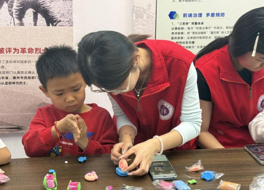 活动现场,志愿者们耐心细致地讲解制作步骤,与孩子们一同开启趣味手工创意之旅。在她们的陪伴与指导下,孩子们认真创作、大胆想象,用灵巧的双手将普通材料变成一件件充满童趣的作品。现场氛围轻松欢乐、温馨融洽,处处洋溢着欢声笑语。大家在动手实践中收获快乐、增进友谊,既锻炼了动手能力与创新思维,也真切感受到来自青年志愿者的暖心陪伴与真切关怀,让童真童趣在温馨时光中尽情绽放。