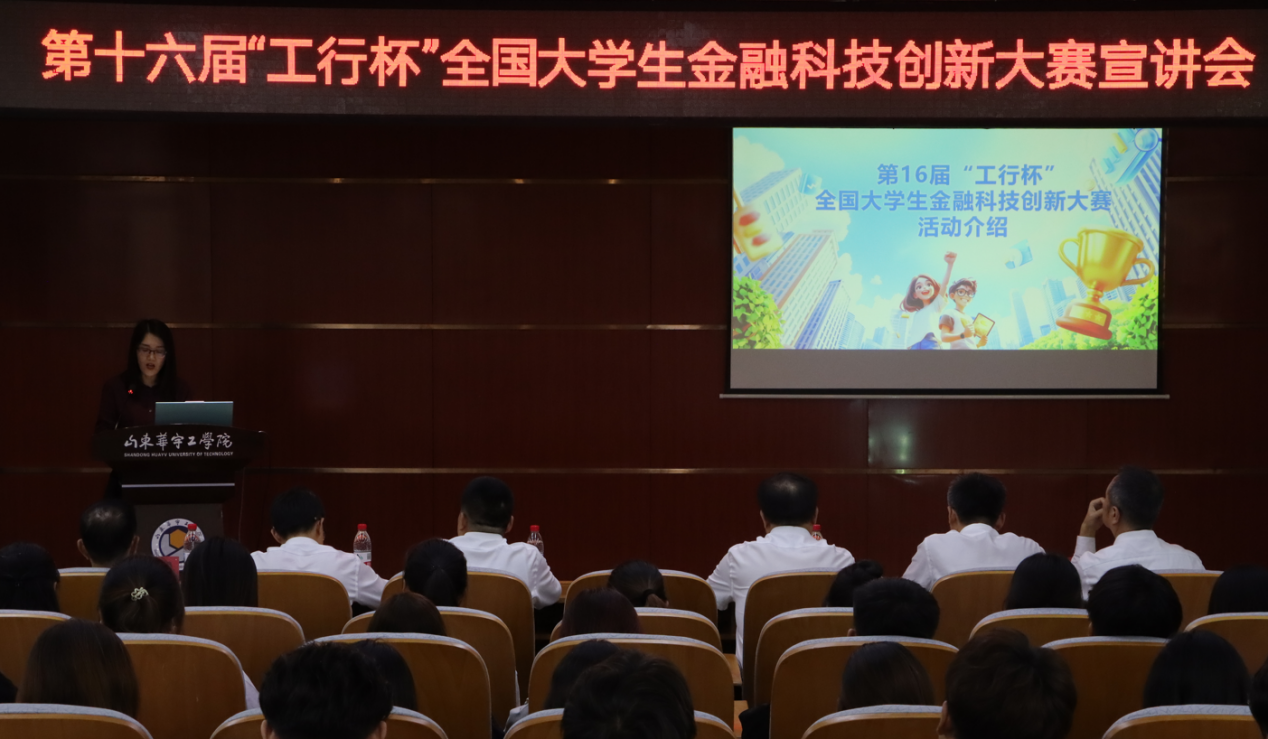 工商银行山东省分行金融科技部创新管理科科长杨茜女士为在场师生作了第十六届“工行杯”大赛的专题宣讲。她围绕大赛赛制、赛题方向、评审标准、报名流程等关键内容进行了系统解读,并结合实际案例分析了金融科技创新的趋势与机遇。杨科长的讲解深入浅出、内容充实,为同学们备赛指明了方向,激发了大家的参与热情。