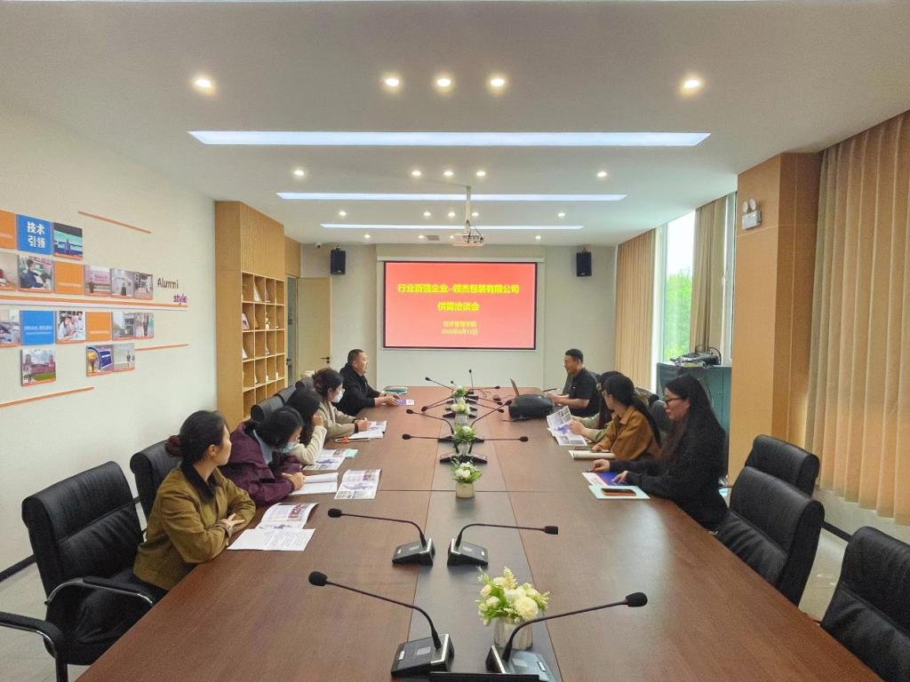 活动伊始,张莉超科长代表学院对周琪昊经理的到来表示热烈欢迎,并详细介绍了学院的发展概况,重点阐述了2026届毕业生的整体规模、学科专业布局、人才培养特色及毕业生核心竞争力,全面展现了学院为社会输送优质应用型人才的坚实基础。随后,经理全面介绍了领杰包装有限公司的发展实力与行业地位——作为中国塑编包装行业电商类TOP1企业、全国塑编包装行业综合排名15强、中国塑编协会副会长单位,公司主营各类包装耗材,年销售额达10亿元,综合实力稳居全国同行业前列。