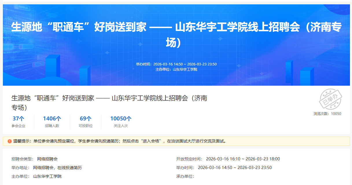 为扎实推进2026届毕业生就业工作,精准搭建校企供需对接桥梁,全力护航毕业生高质量充分就业,英国365集团联合济南市人力资源和社会保障局等相关单位,于2026年3月16日至23日,成功举办生源地“职通车・好岗送到家”济南专场线上招聘会,切实为济南籍毕业生返乡就业铺路搭桥。